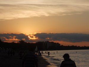 బీచ్ లో బాగా ఆడి, అలసి పోయి, తడిచి పోయి, ఇసుకలో కూర్చుని, చల్లని గాలి ఒంటికి తగులుతుండగా – అస్తమించే రవి ని చూస్తుంటే భలే ఉంటుంది ….